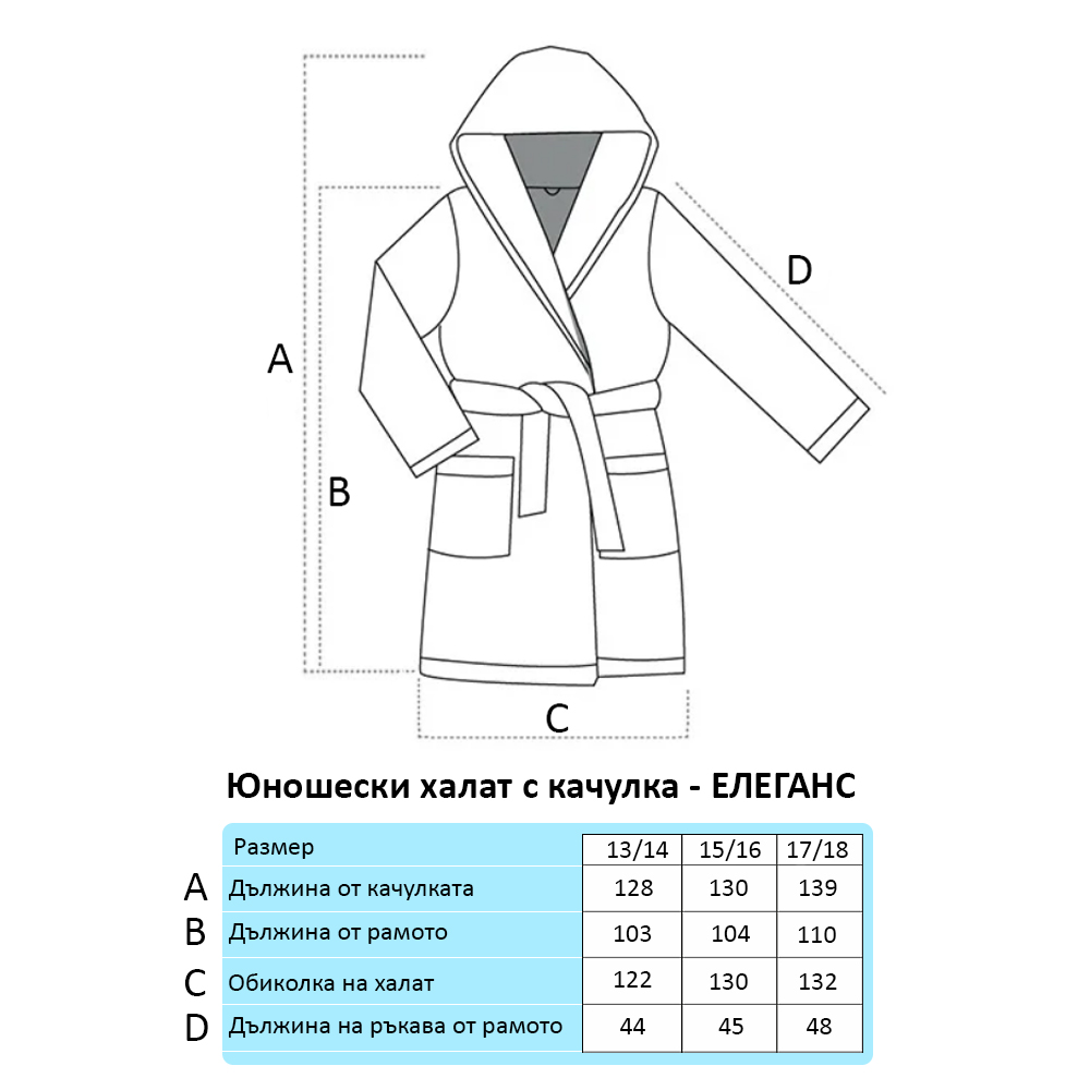 Този халат не само предлага мекота и комфорт, но и е дишащ и подходящ за деликатната юношески кожа.